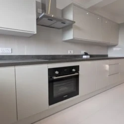 Upon entering, you are welcomed into a generous living area that seamlessly flows into a bright and contemporary kitchen. The kitchen is well-equipped with ample cupboard and drawer storage, providing both functionality and style. Just beyond, a convenient utility area offers additional space for appliances.